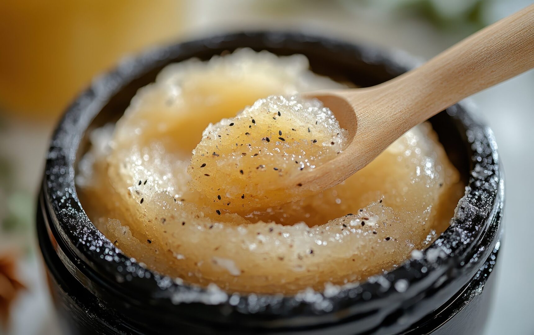 - İnce Taneli Şeker/Esmer Şeker: Nazik eksfoliyatör (tanecikler) olarak görev yapar. Miktarı: 2 tatlı kaşığı.